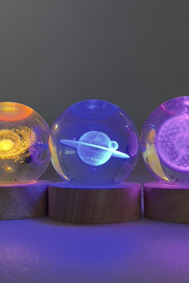 *Material premium: el soporte de la lámpara está hecho de madera y la esfera es de cristal, de excelente calidad. Es ópticamente transparente, lo que lo hace perfecto para mostrar imágenes grabadas en 3D.